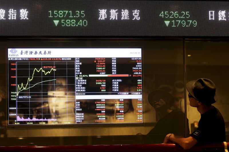 TAIPEI (Reuters) - Taiwan stocks ended down 8.4% on Monday, a record slump, with tech stocks including TSMC plunging as investors sold off one of Asia's top performing markets this year, spooked by a poor outlook for global tech stocks and the U.S. economy.