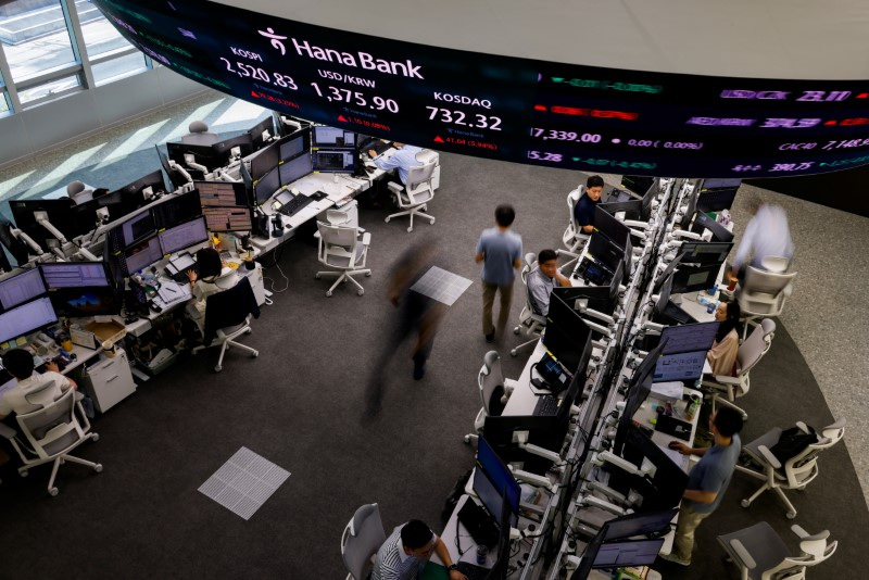 SINGAPORE (Reuters) -Japanese shares led Asia higher on Tuesday with the yen on the back foot, ahead of a slew of data this week, including on U.S. inflation, which will help investors gauge the Federal Reserve's policy outlook after volatile markets last week.