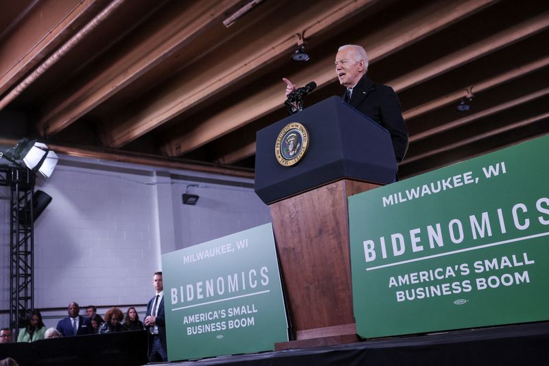 WASHINGTON (Reuters) - U.S. President Joe Biden may not have gotten much credit politically for the thousands of grants and public investments his administration showered across the country, with airport or road projects in places like South Carolina and Wyoming unlikely to dent former President Donald Trump's locked-in status in those deeply conservative states.